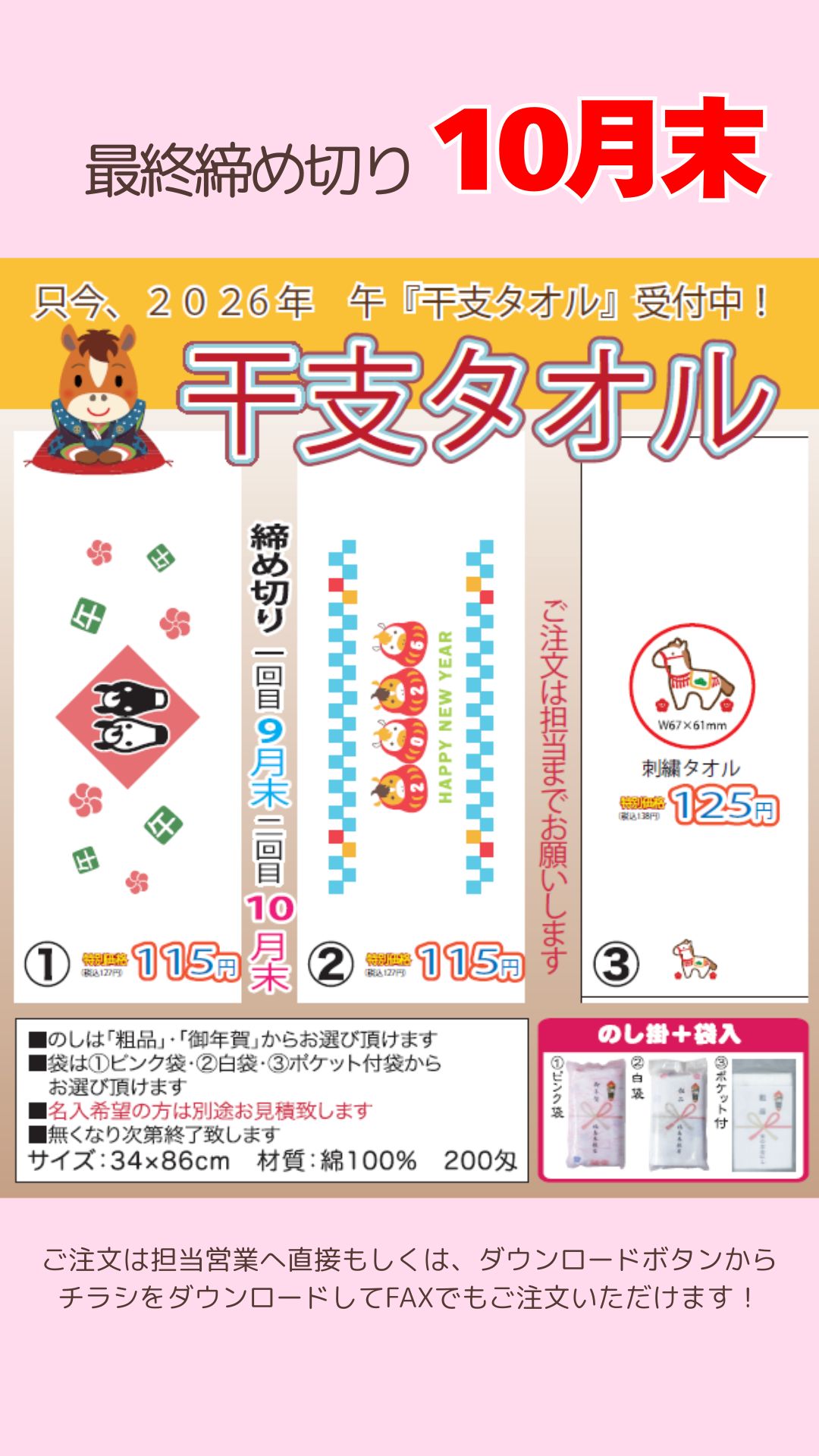 来年の干支「午(うま)」をモチーフにした、2026年限定の干支タオルが入荷しました🎍